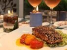 O salmão ao forno com crosta de gergelim e purê de couve-flor é uma opção fitness leve e sofisticada.